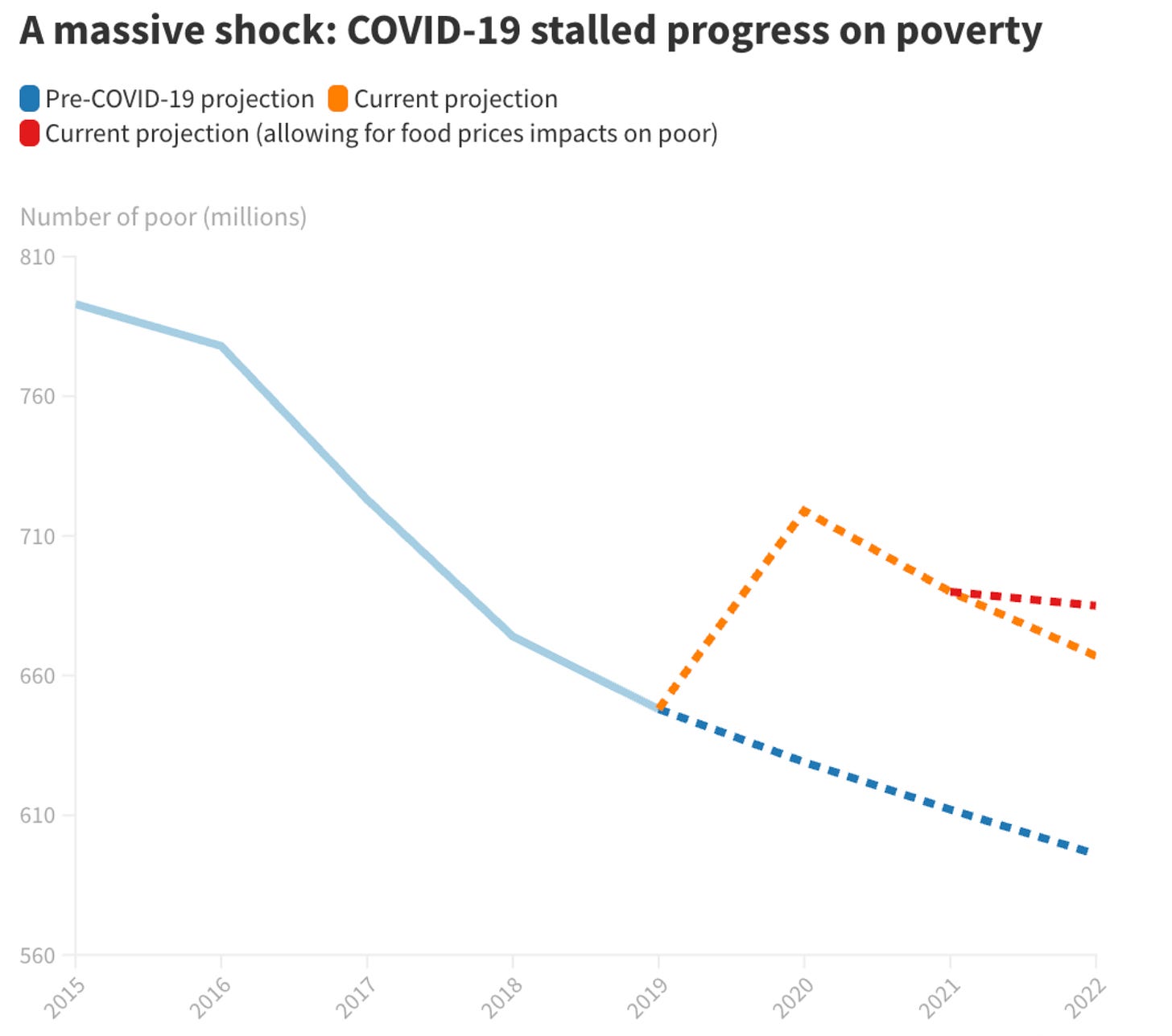 The World Bank estimates that lockdowns meant about 70 million more people have ended up in extreme poverty in 2020 under a baseline scenario, with numbers potentially reaching 100 million under more severe conditions