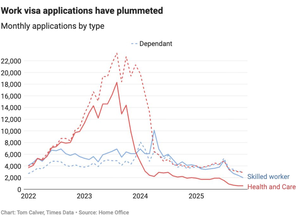 Just as no one saw the migration surge coming when the Tories loosened the post-Brexit controls, no one saw migration collapsing when those controls were later tightened. I wrote about this for The Times last weekend and discussed it with Kate McCann on Times Radio this morning.